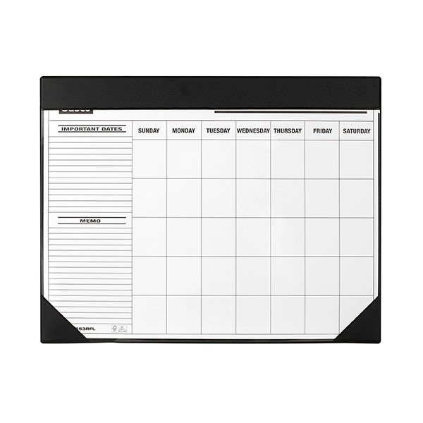Black stylish PVC desk mat with undated calendar and clear overlay suitable for home or office.