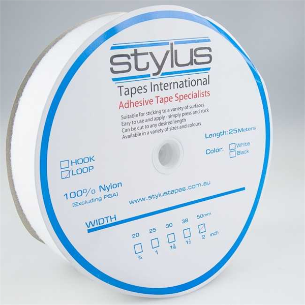Stylus 3327 Self Adhesive Loop Only 50mm x 25m Roll White