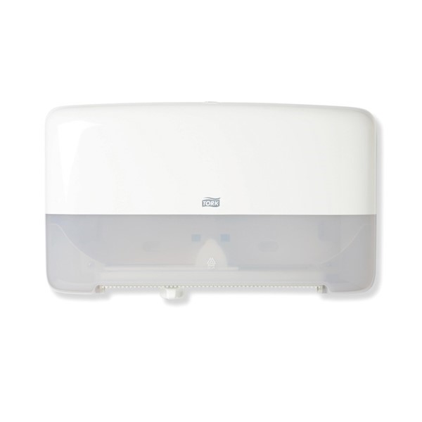 The compact, yet high-capacity Tork Mini Twin Toilet Paper Dispensing System is the ideal choice for high-traffic washrooms as well as environments where efficiency and reduced cost are priorities