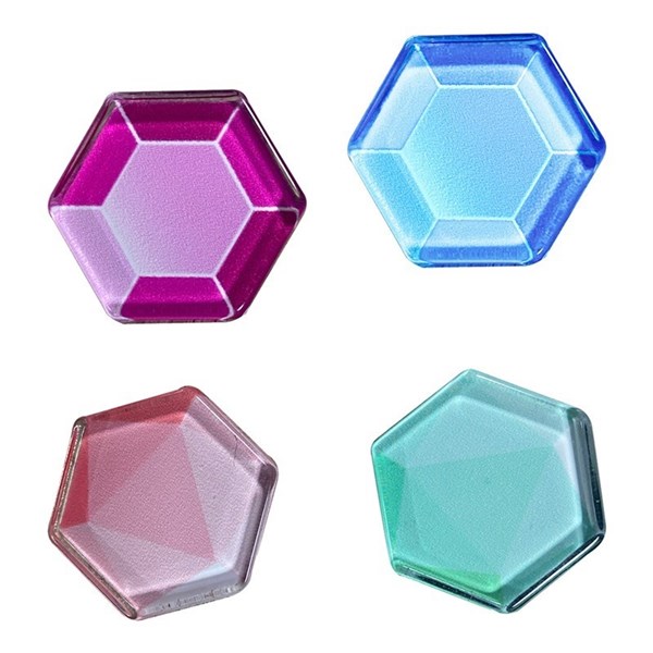Super Strong Magnets. Designed for Glassboard. Size: 28mm x 32mm. Hexagon Design. 4 Colours.