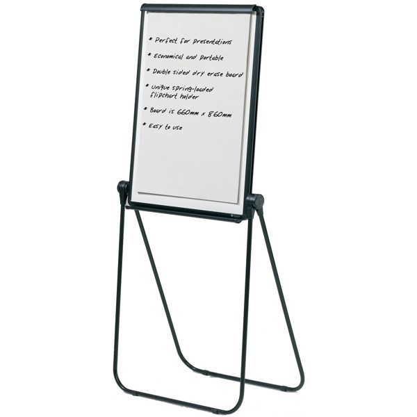 Our most popular flipchart tripod stand with magnetic whiteboard surface.