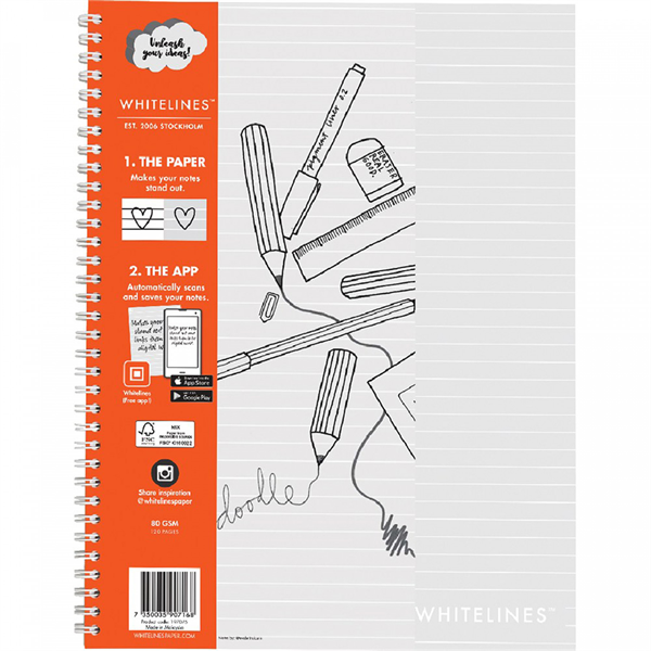 The white lines support your writing and drawing without the distractions from conventional dark lines, and makes your notes stand out